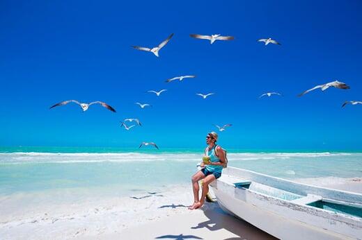 Sus playas prístinas de arena blanca y muy suave oleaje se extienden a lo largo de varios kilómetros y atraen a turistas de distintos lugares del mundo para disfrutar su relajado ambiente. En Holbox, no se permite la circulación de vehículos, excepto bicicletas y carritos de golf. Sus calles son de arena y no encontrarás los grandes resorts que son famosos en Cancún o la Riviera Maya, sino pequeños hoteles íntimos rodeados de naturaleza y que son ideales para descansar.