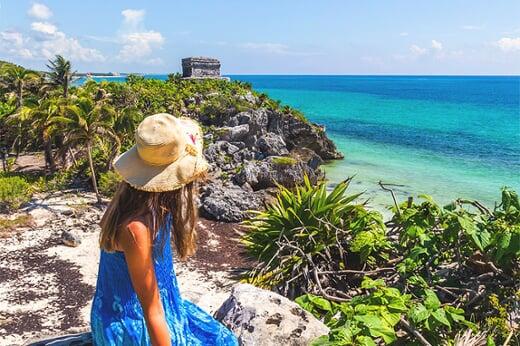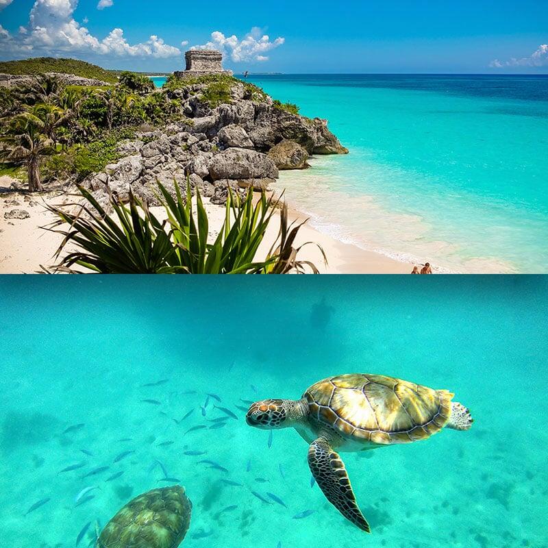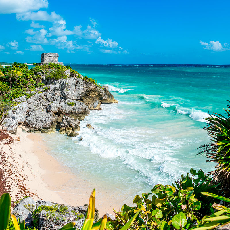 La antigua ciudad prehispánica de Tulum en la parte sur de la Riviera Maya destaca por sus murallas y ser la única urbe maya construida frente al mar Caribe, además de ser uno de los puntos más fotografiados de todo México. El complemento perfecto para unas vacaciones en Cancún o Playa del Carmen.